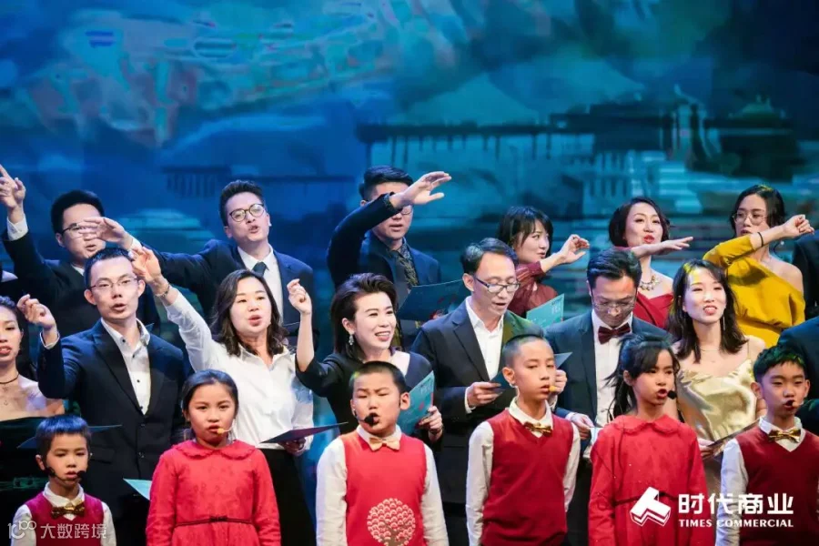 盛典尾声,10位小家属与时代商业管理层同台献声,温情演唱《明天会更好》。