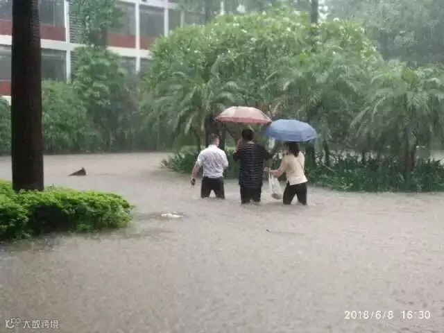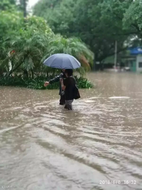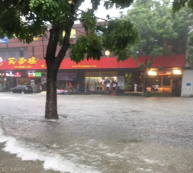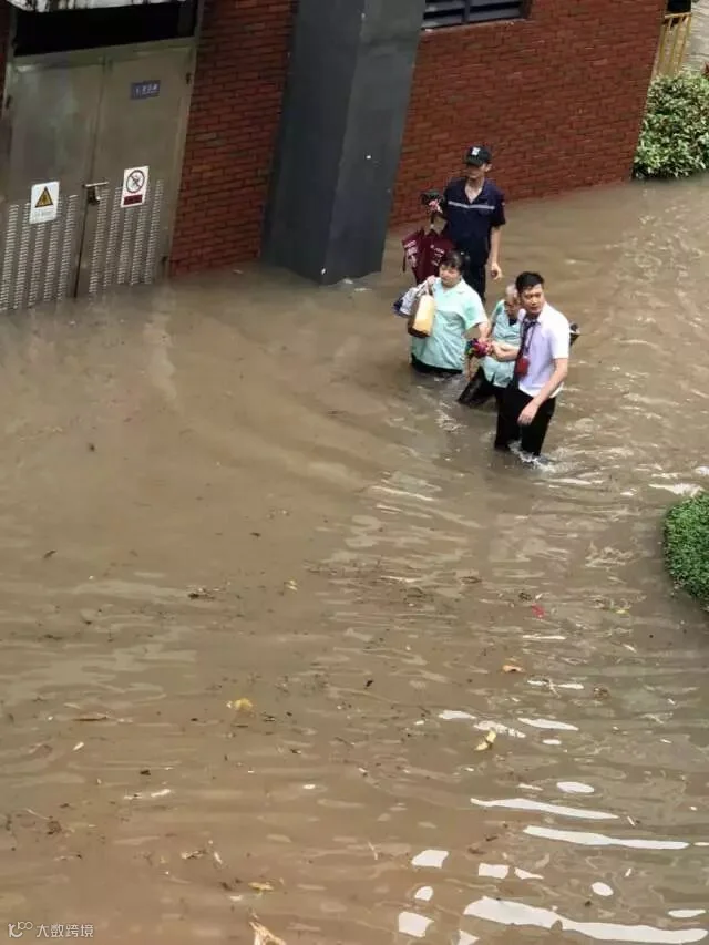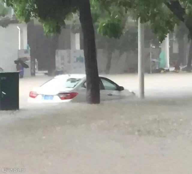 车在水中,人在雨中!
