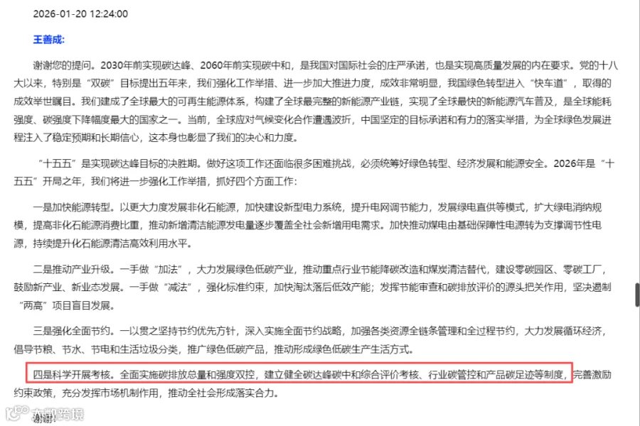 2026年伊始,一场席卷全国公共机构的节能降碳行动已拉开大幕。1月20日,国家发展改革委在新闻发布会上正式宣布:2026年将全面实施碳排放总量和强度“双控”。