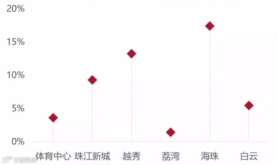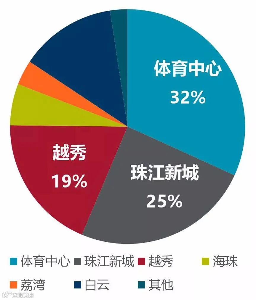 体育中心商圈租金水平继续引领全市,越秀商圈、海珠商圈紧随其后。