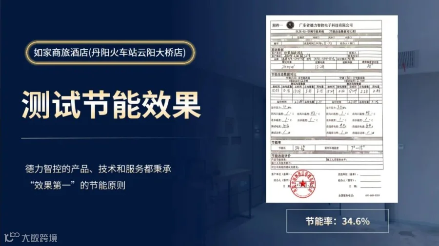 近日,德力智控为丹阳市如家商旅酒店空调设备节能改造,实地打样节能率34.6%!