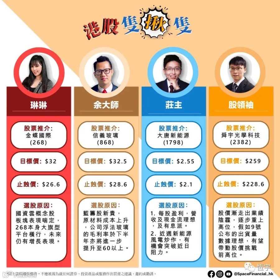 」邀請到Space Finance財經台的嘉賓,推薦一隻心水股票。每週一中午時段,會在社交平