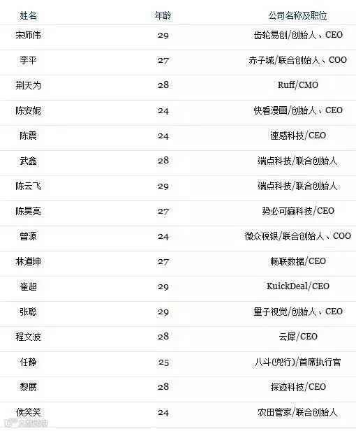 再看看2017福布斯中国30位30岁以下精英榜