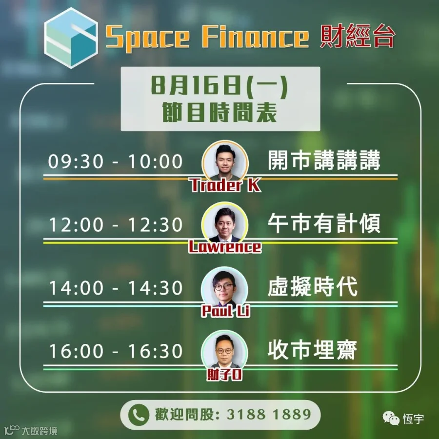 免責聲明:節目內容僅作參考,不應被視為就任何證券、投資產品或服務作出買賣之建議、邀約或勸誘。投資涉及風險,證券價格有時可能會非常波動,且可升可跌,甚至變成毫無價值。投資前投資者應先閱讀有關產品的發售文件、財務及相關的風險聲明,以理解有關産品的特性及風險。投資者應考慮該投資是否適合投資者的個別情況,並向有關的專業顧問查詢。以上內容純屬嘉賓之個人意見,並不代表本台立場。