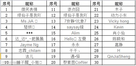恭喜序号为10、16、17、25 、28 的粉丝