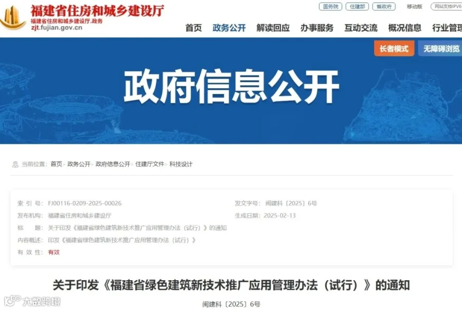 2月13日,福建省住房和城乡建设厅印发《福建省绿色建筑新技术推广应用管理办法(试行)》的通知(以下简称:绿色建筑技术推广)。