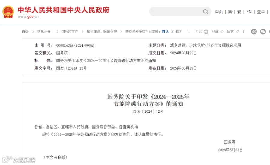 近日,国务院印发《2024-2025年节能降碳行动方案通知》。(以下简称:行动方案)