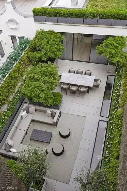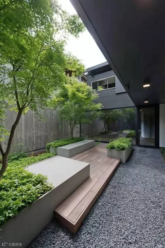 又或者是为了和这个都市更加般配,索性把院子设计成现代简约化。