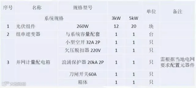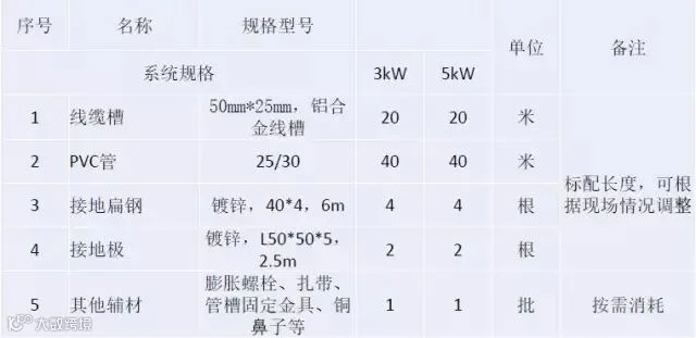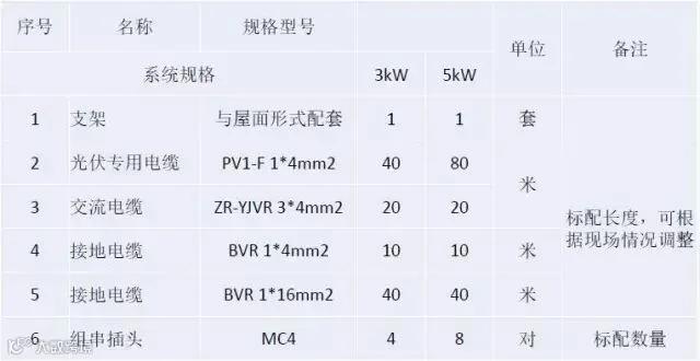 一、典型户用3/5kW系统BOM清单