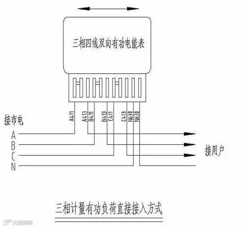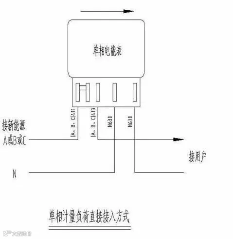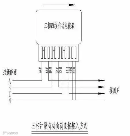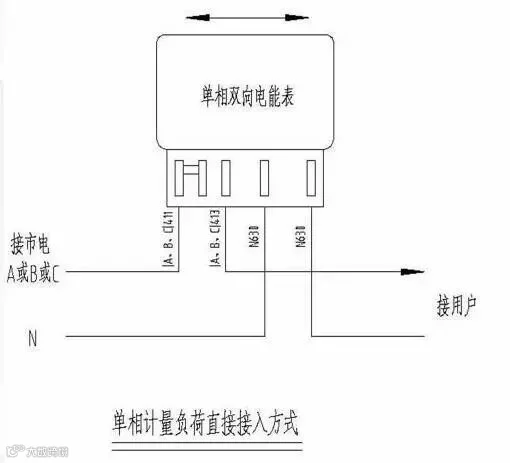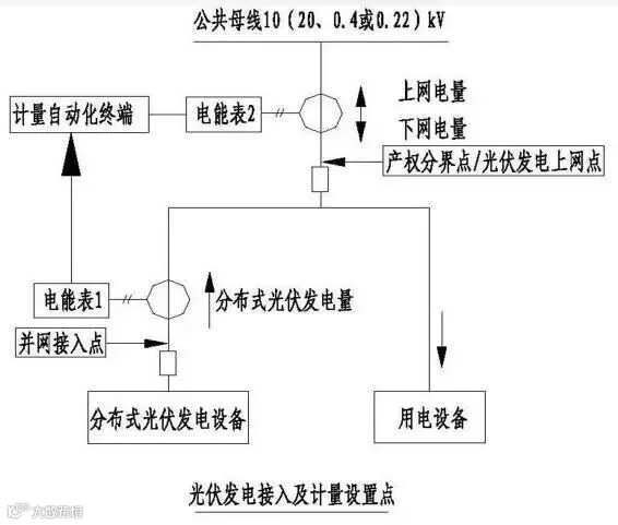目前家庭分布式光伏发电基本以自发自用余电上网的方式为主,其电能计量要求设置两套电能计量装置,实现光伏发电发电量、上网电量和下网电量分别计量, 其接线方式如下图所示。其中,电能2需支持正反向计量功能、分时计量功能和整点电量冻结功能,具备电流、电压、功率、功率因数测量及显示功能。