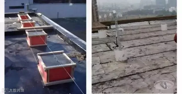 屋顶属于油毛毡加现浇混凝土屋顶,局部地方厚度<6cm, 直接打膨胀螺栓会导致墙体打穿。