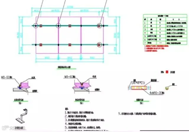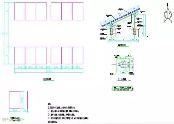 解决方案:主梁沿着建筑结构梁放置,用膨胀螺栓和屋面固定,膨胀螺丝打入10cm,然后次梁横