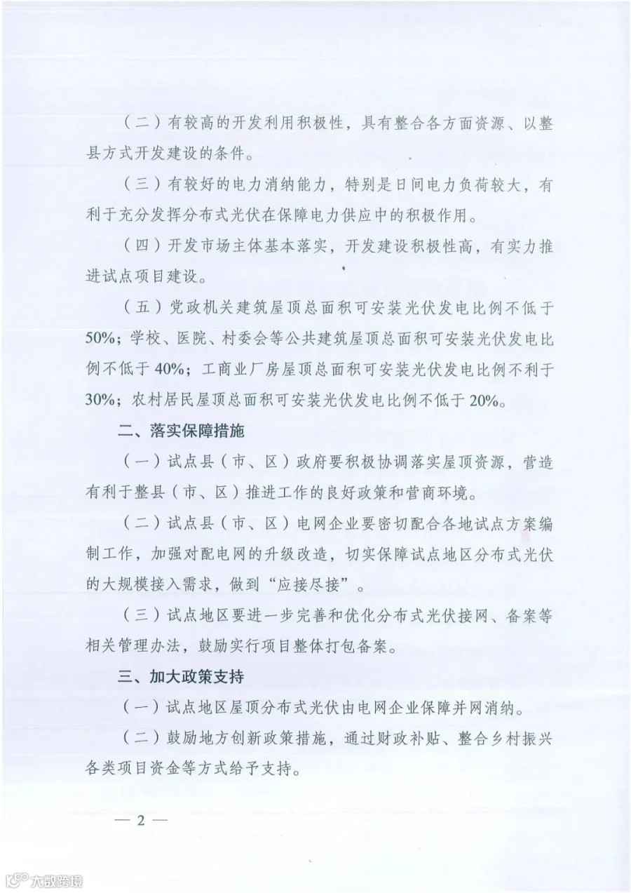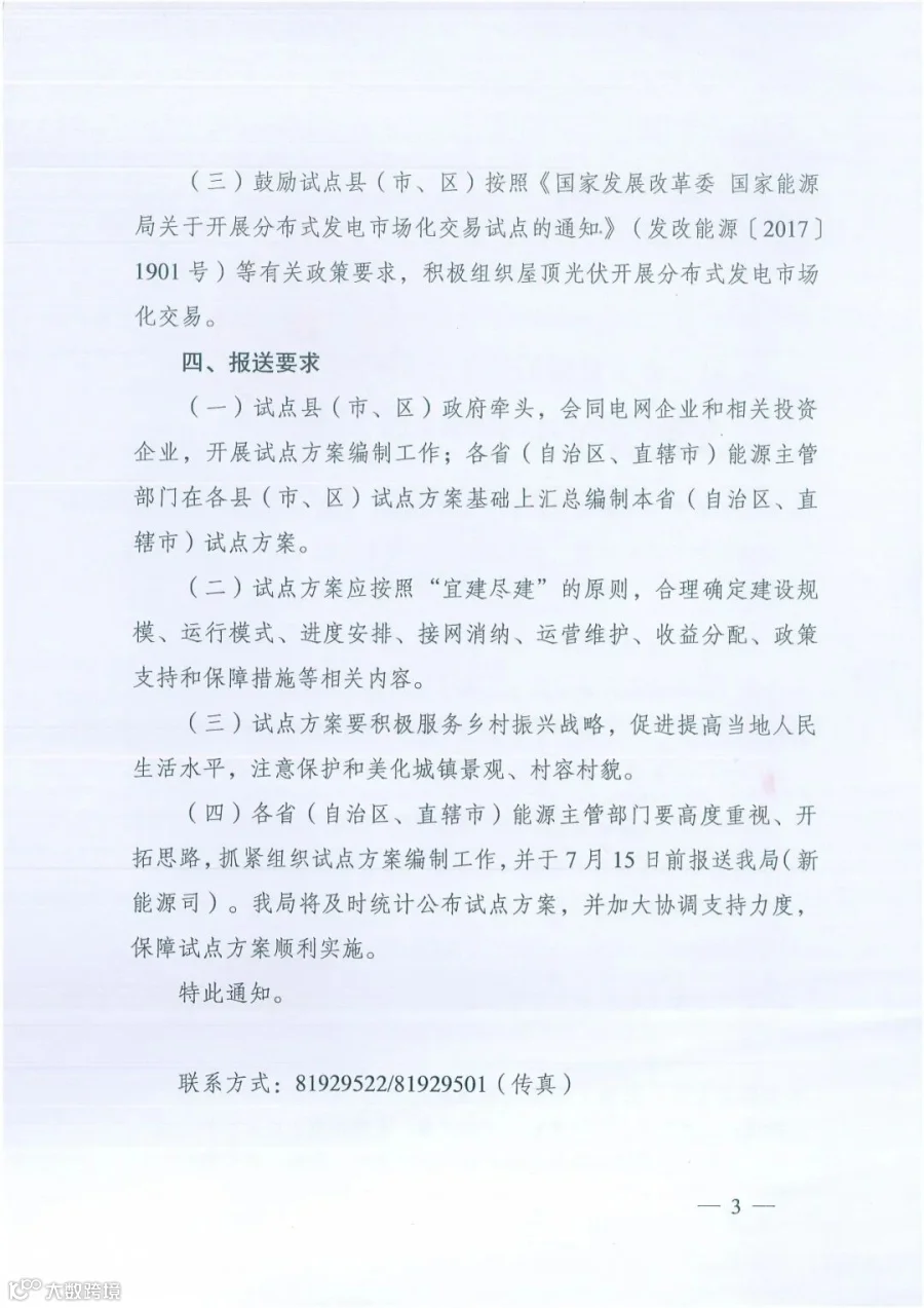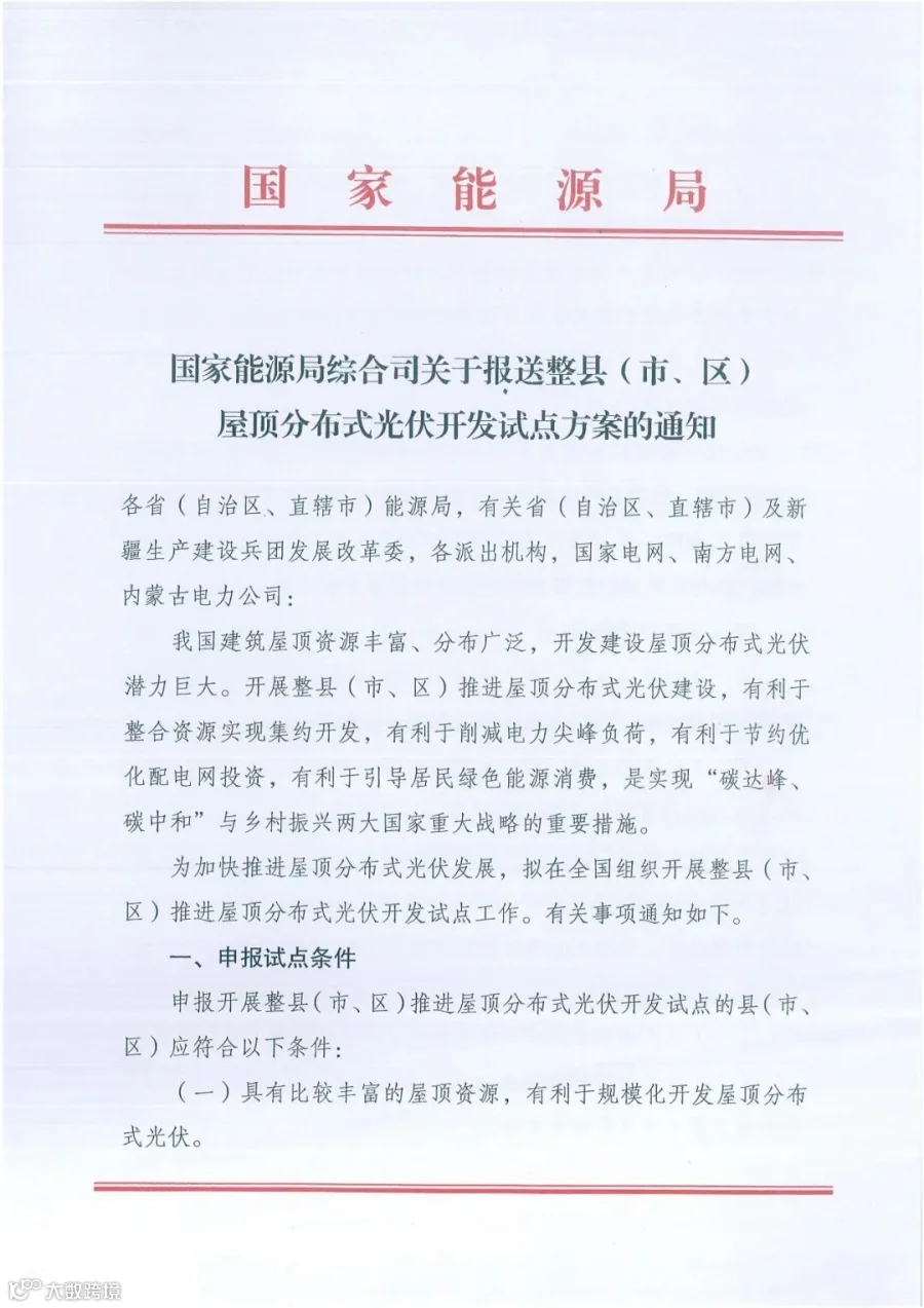 附:国家能源局综合司《关于报送整县(市、区)屋顶分布式光伏开始试点方案的通知》