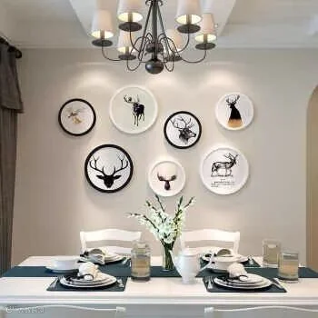 圆形组合:比起中国人喜欢四四方方的壁画,欧美那边用到圆形画框的频率更高,简欧风格的家可以考虑这种排列方法。