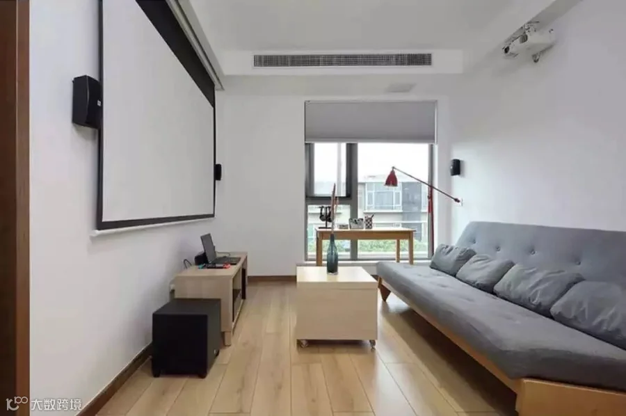 家里的书房主要是男主人的地盘,宽大的沙发搭配投影仪,周末会窝在里面看看书、看看电影。