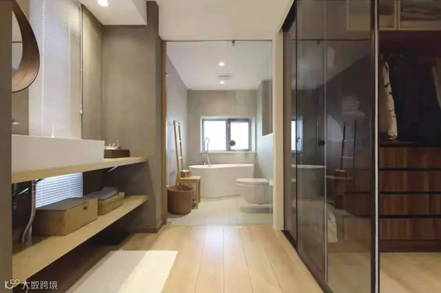 超大的洗手台、衣帽间、浴缸,屋主最中意的就是浴缸,可以泡着牛奶浴,追着剧。