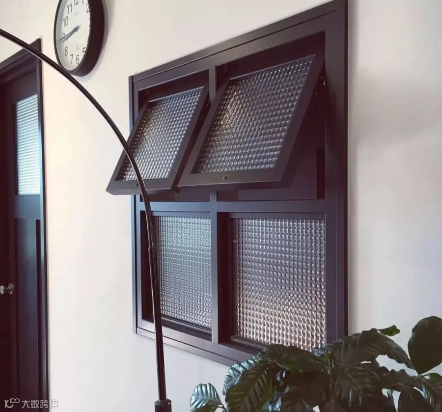 半透明的玻璃既能保证隐秘性,又能透光。至于通风,就完全靠开合的窗扇了。