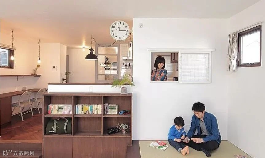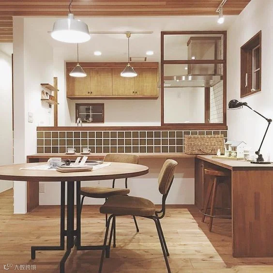 起初这种室内窗的家居设计在日本居民中不在少数,特别是在厨房和客厅运用的特别多,利用木质窗框搭配各种纹路的玻璃,轻松就能营造出如同咖啡厅一般的休闲氛围。