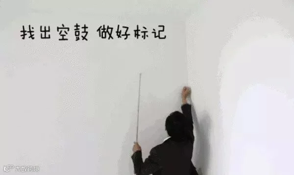 要检查墙面下是否存在空鼓,只要用小锤轻击,就能听出下面有没有空鼓了,如果没有带小锤用随身带的壹元硬币或小木棍也可以。