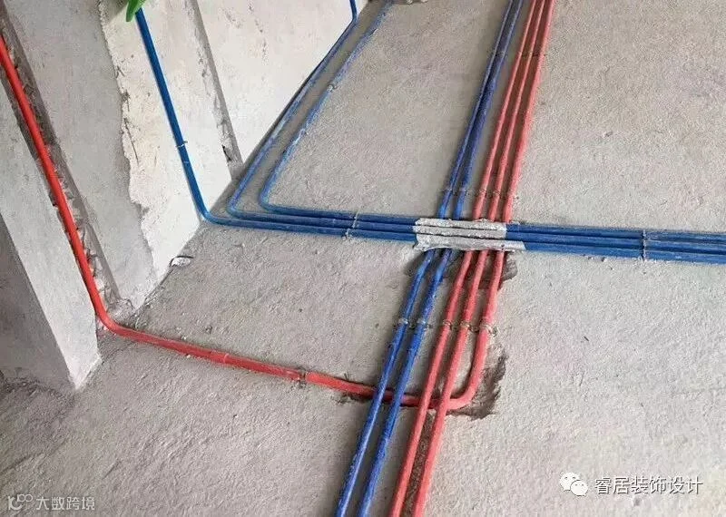 这里说的交叉指的是“强弱电交叉”,睿居的线管都进行了分色,红色的是火线(强电),蓝色的是零线(弱电),当两种线交叉时,应用锡箔纸包裹并做过桥弯处理。