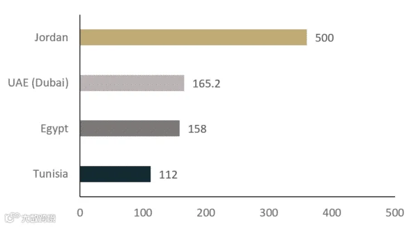 目前,使用分散的屋顶或地面安装的太阳能系统来满足能源需求,正迅速得到普及。其中,包括阿联酋、阿曼、巴林、科威特、约旦、黎巴嫩、埃及、突尼斯、摩洛哥和阿尔及利亚,约旦、阿联酋、埃及和突尼斯等国家,在装机容量方面处于明显领先地位。
