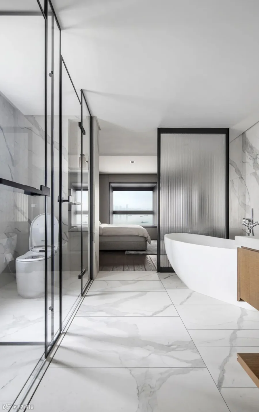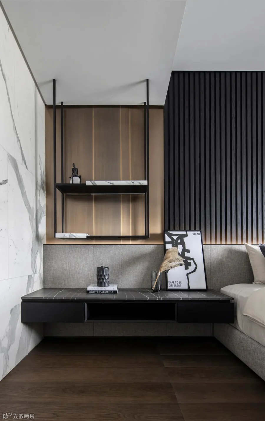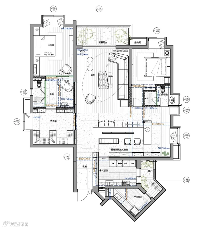 空间聚集点以中岛为轴,长桌为辅,打破客餐厅之交界,足温下材质的转变又不失场域的围塑感。