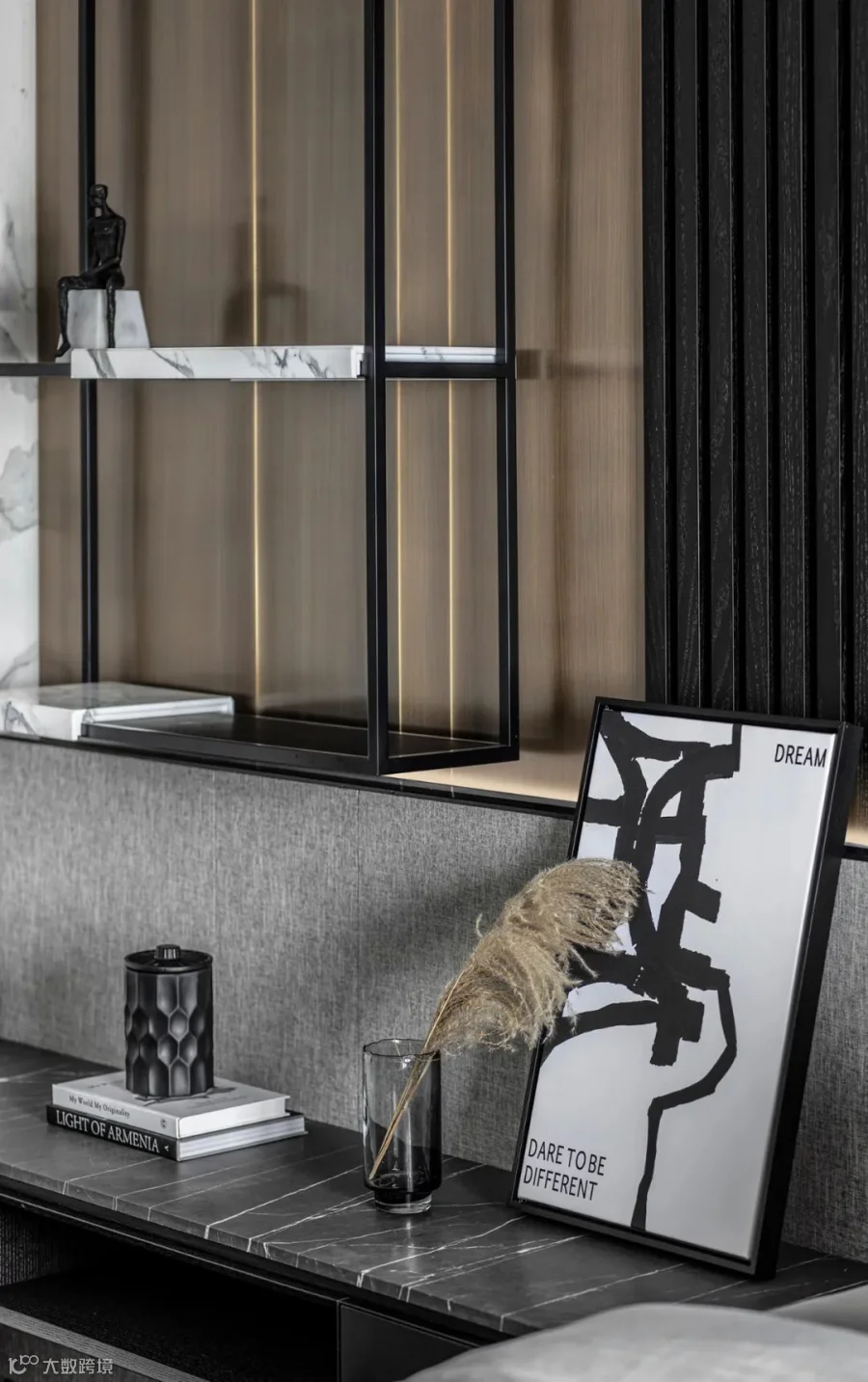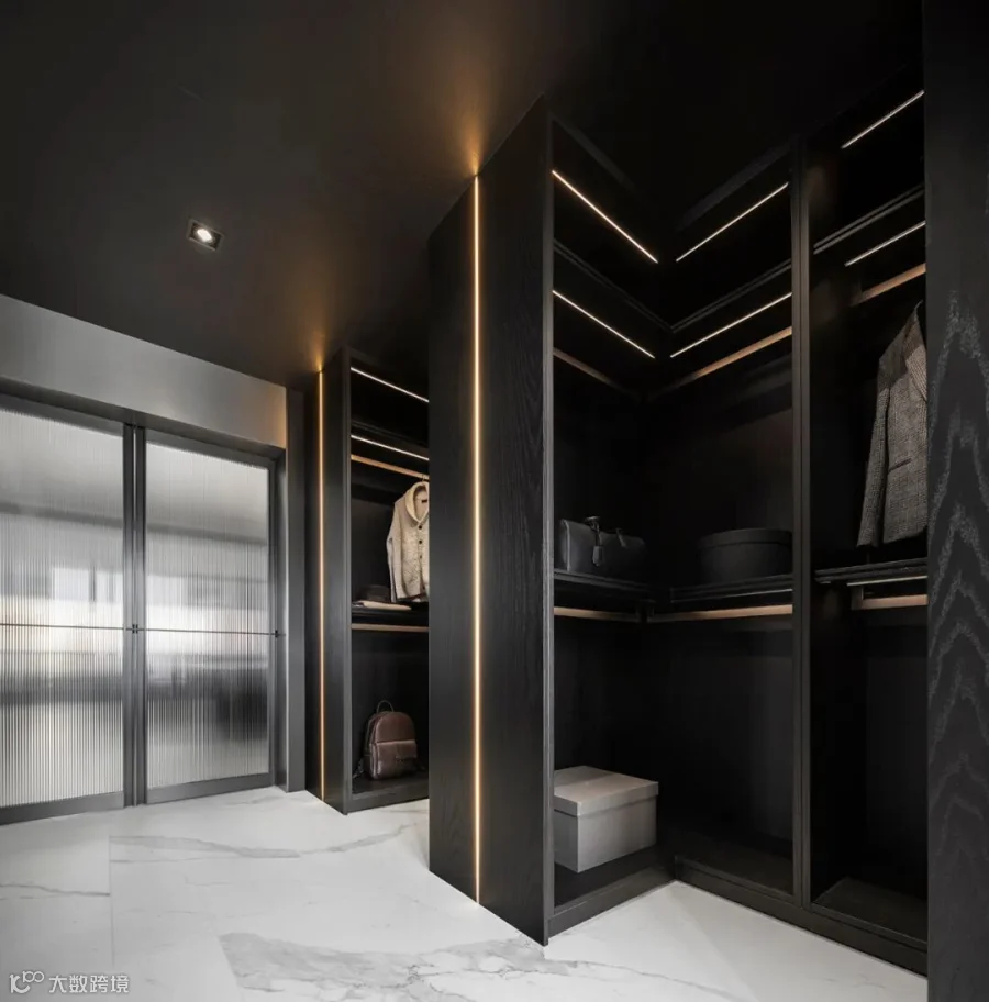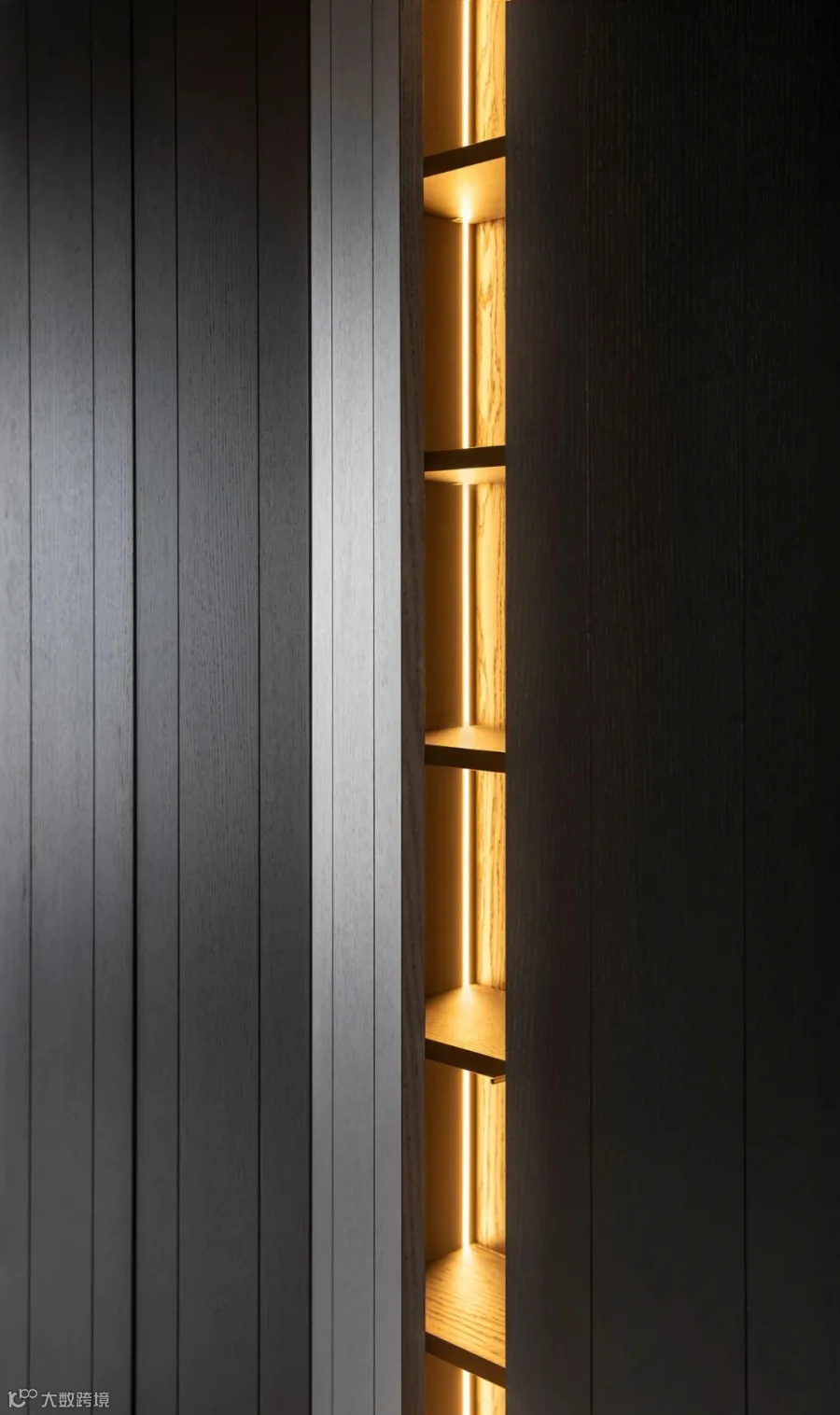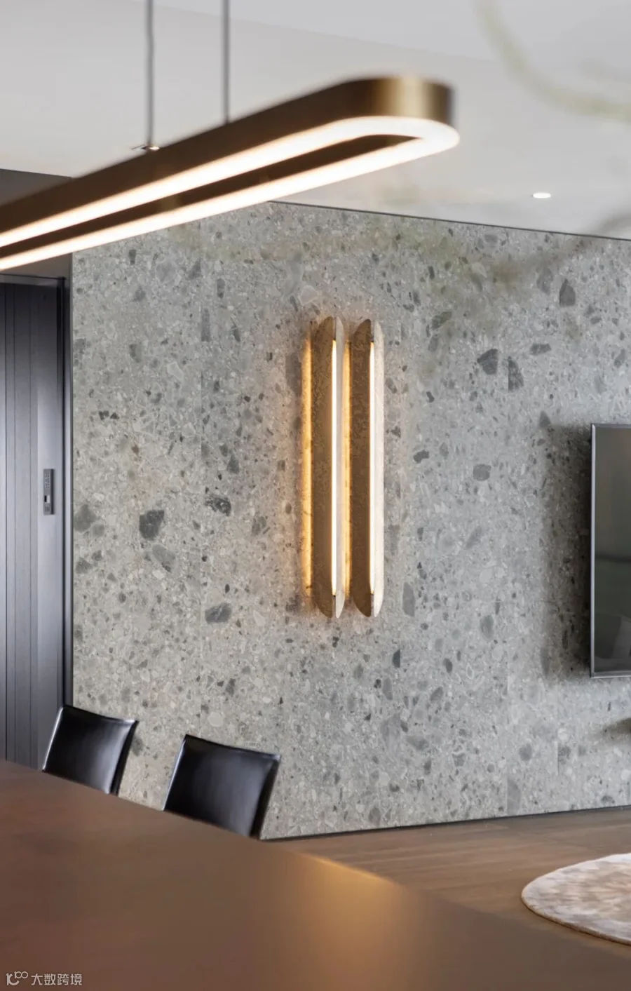 以线性灯架构,来理解材质中的脉络,加上立灯置入,表达空间想诉说的层次。