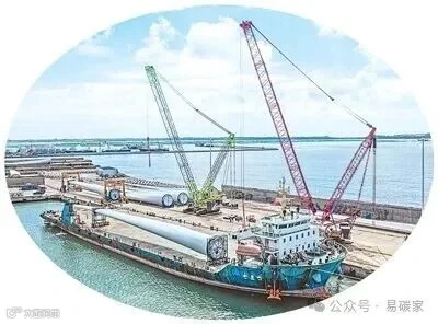 在山东省荣成市石岛管理区的海上风电产业基地,超大型风电叶片正在吊装和运输,准备运往海上作业区进行安装。李信君摄(人民视觉)