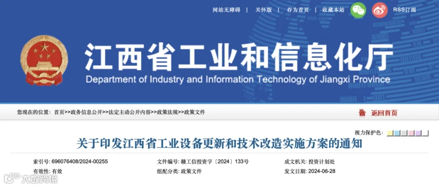 关于印发江西省工业设备更新和技术改造实施方案的通知