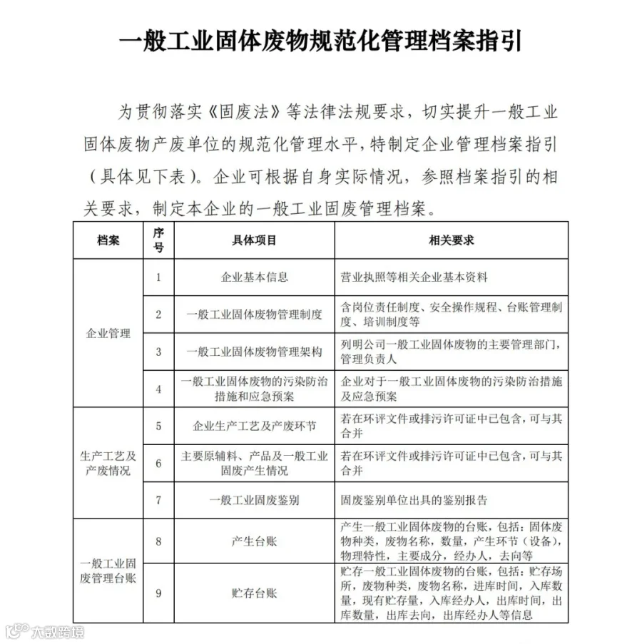 企业可根据自身实际情况,参照档案指引的相关要求,建立一般工业固体废物规范化管理档案。