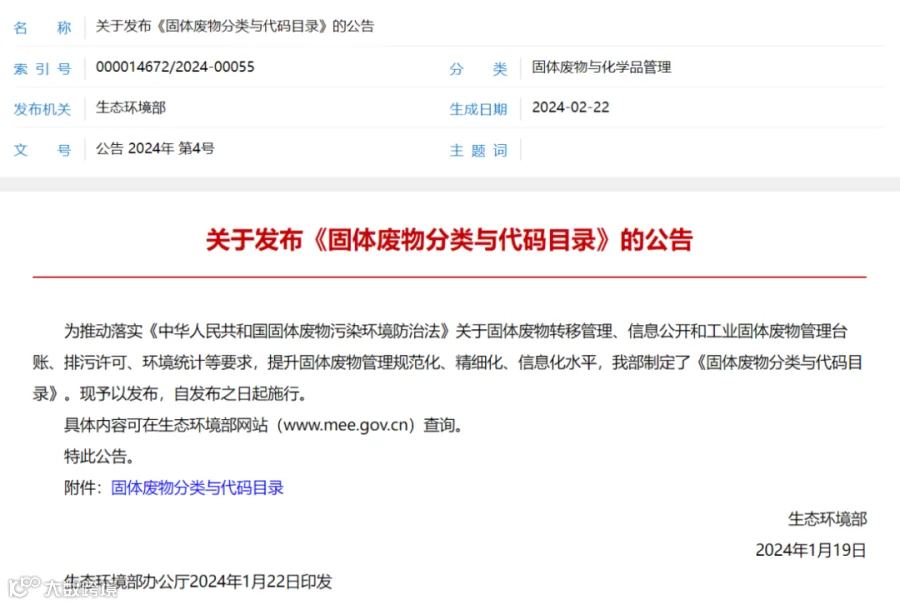 《固废分类与代码目录》全文