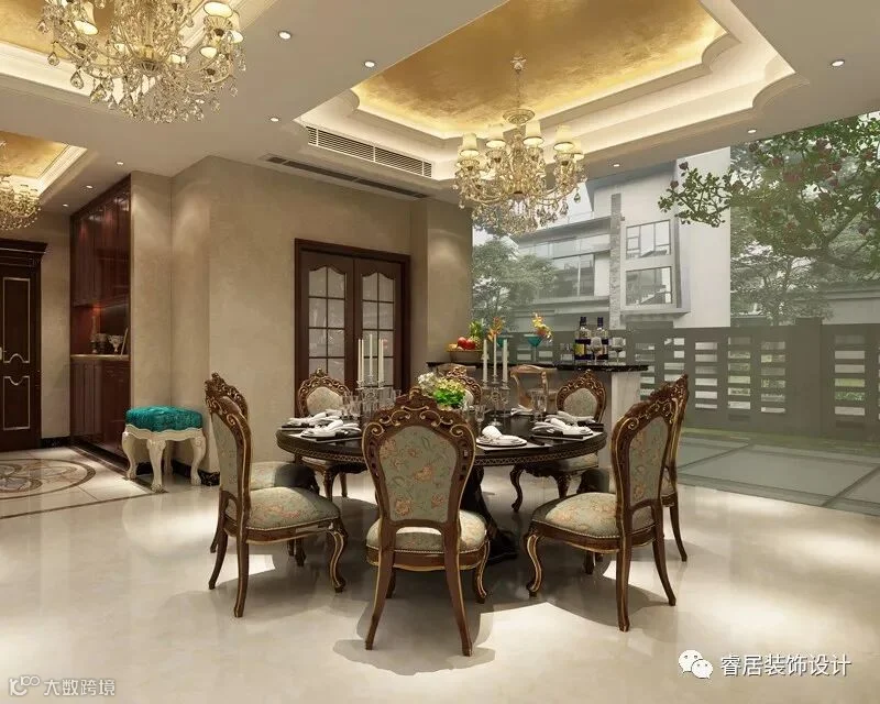 ▲负一楼客厅2--选家具时结合业主的喜好,选用了红木色欧式系列家具,气质沉稳高贵,细节雕刻精美,洋溢着古典的稳重华丽。