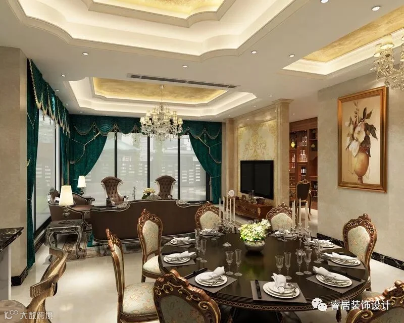 ▲一楼客厅--造型上,以欧式线条勾勒出不同的装饰造型,气势恢宏、典雅大气。