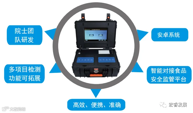 质量快检和安全快检系列产品可用于农产品、食品、药品、纺织品、饲料等领域的品质定性定量分析,也可用于农药残留、兽药残留、重金属、违法添加剂、有毒物质以及微生物等指标快速测定,智慧监管。