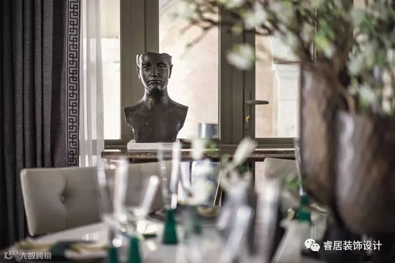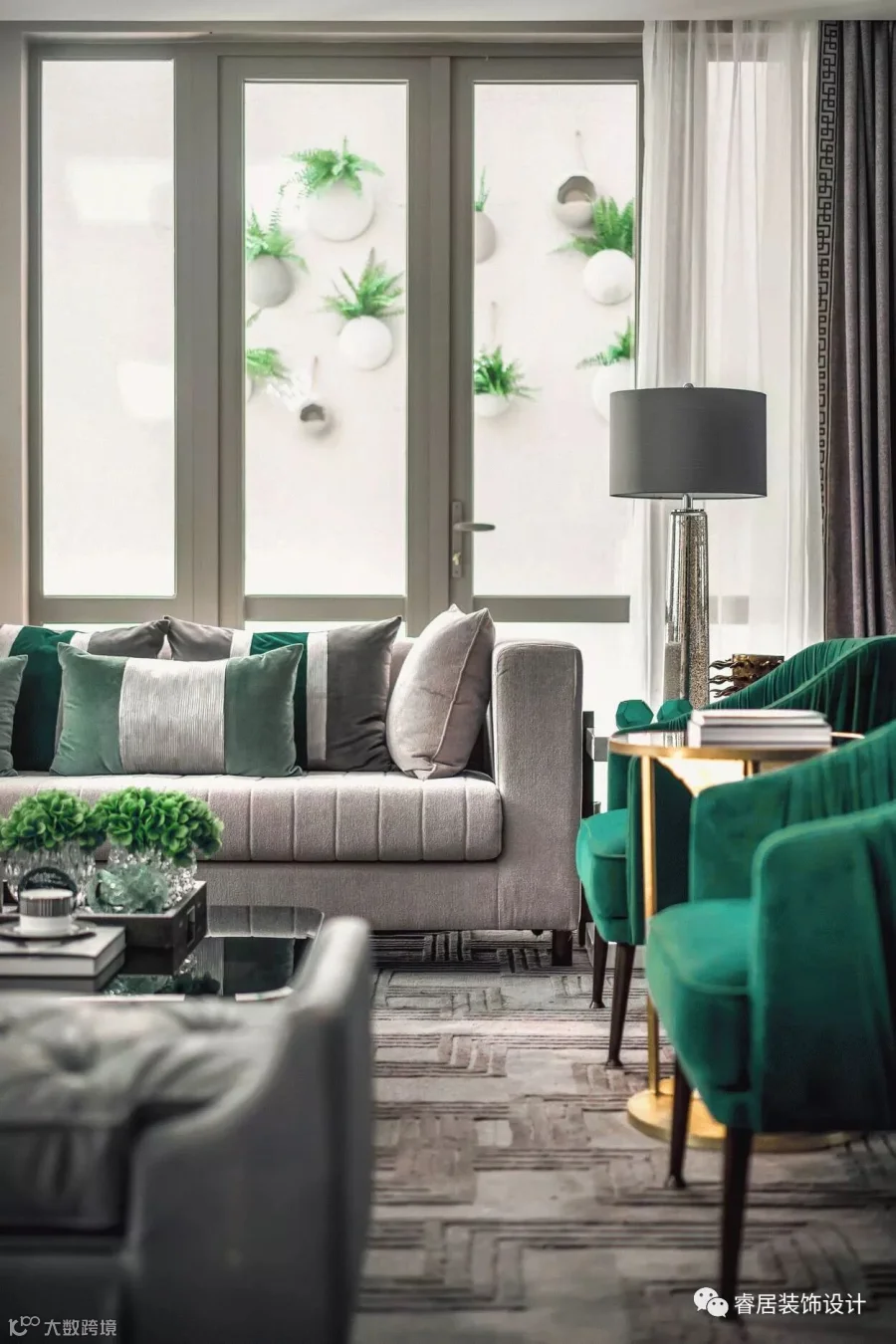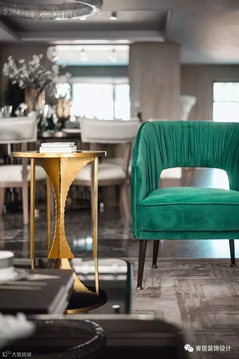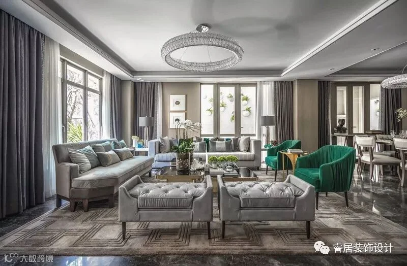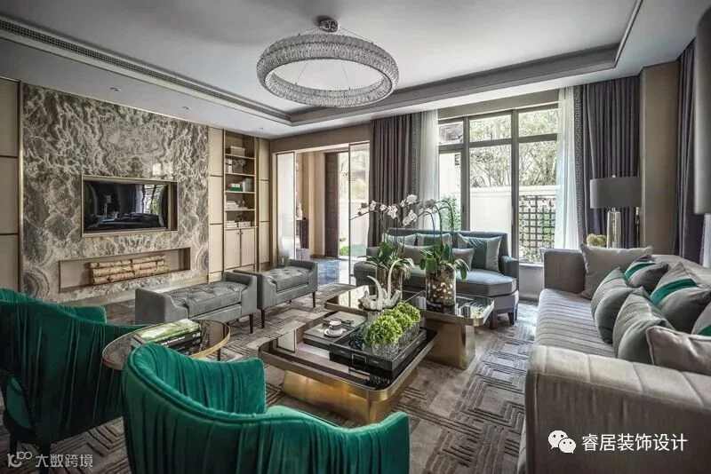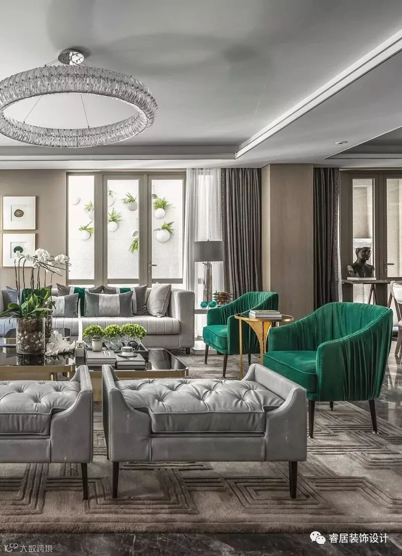 “高级灰配祖母绿,让这个405㎡ 的别墅雅静风清”