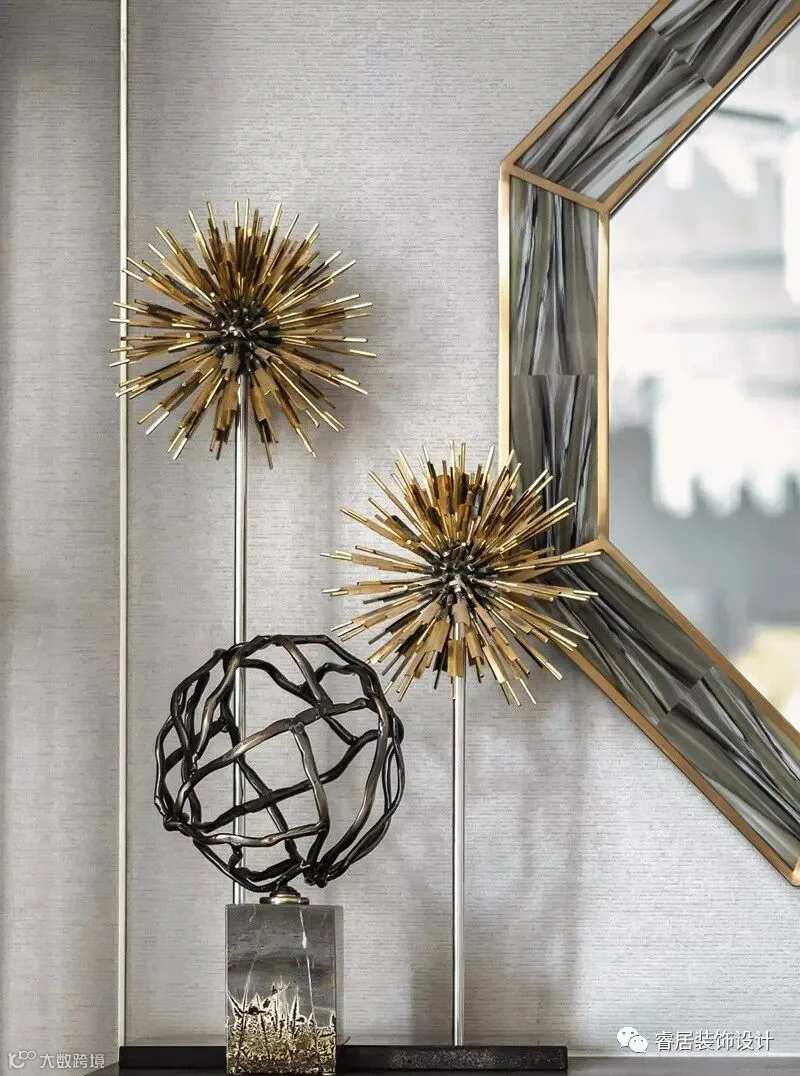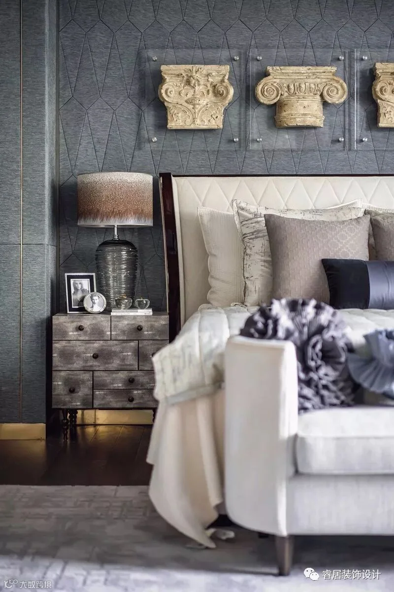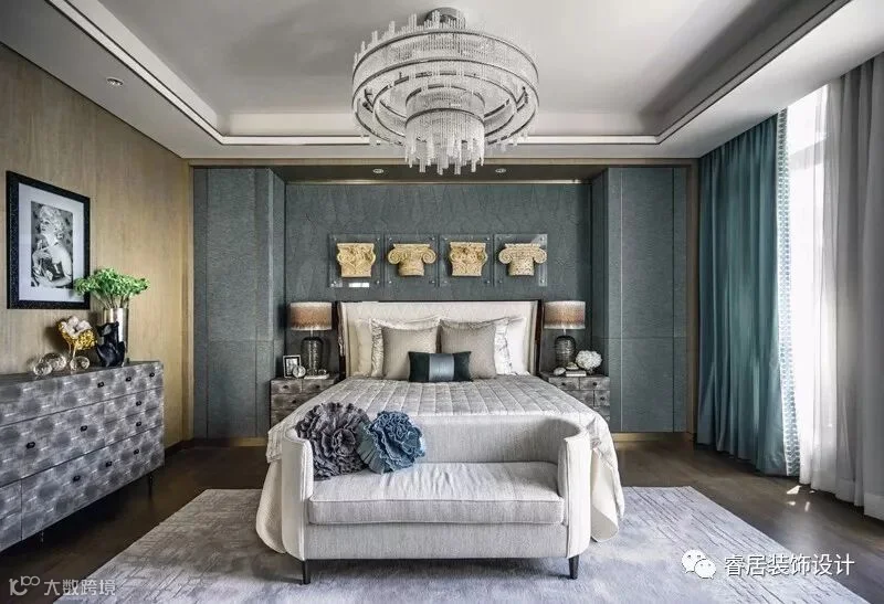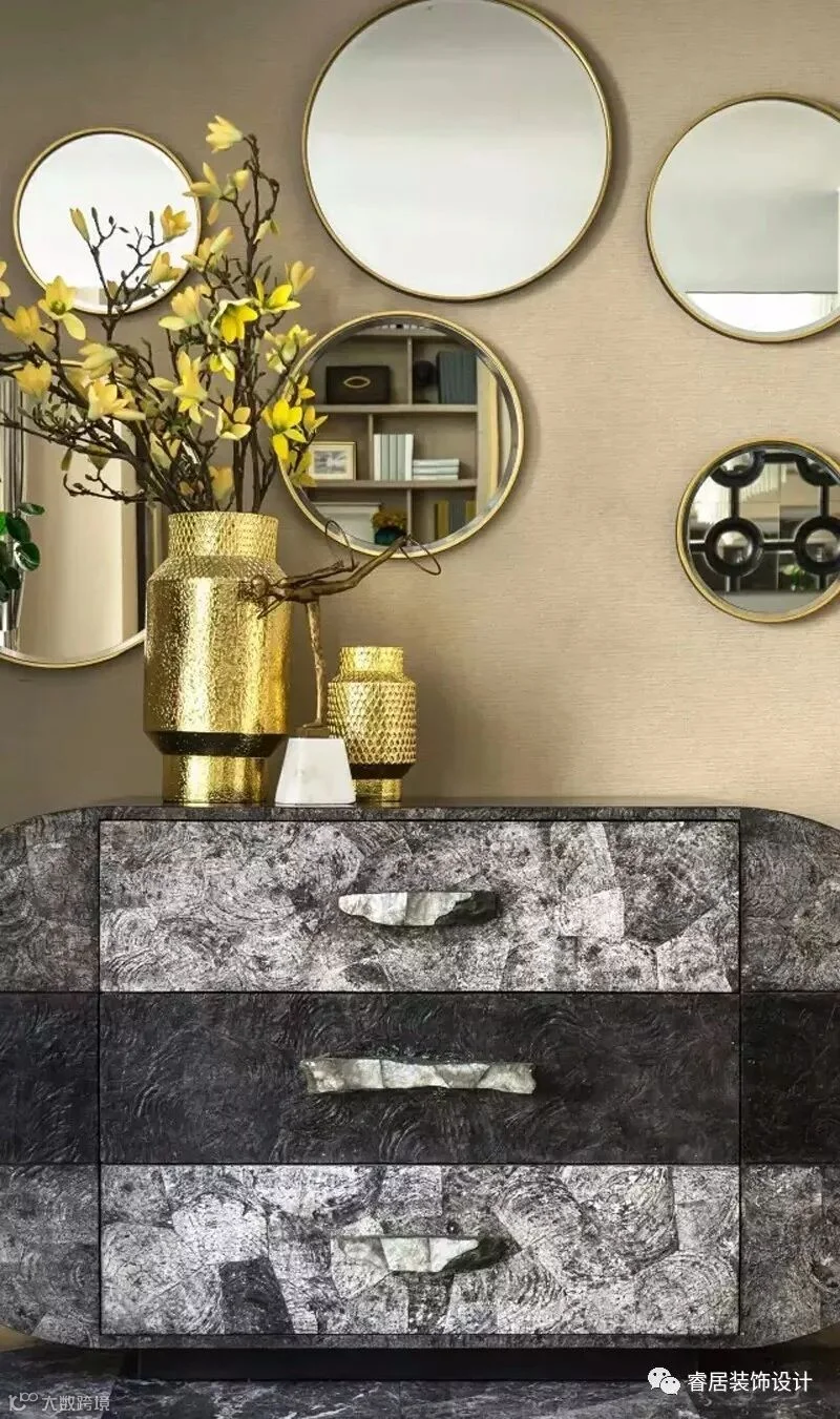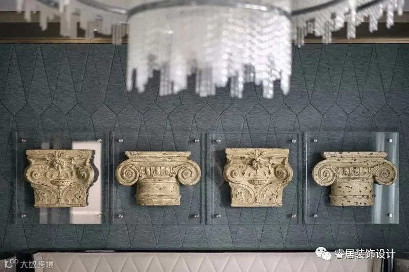 “设计以玉石之王翡翠的色彩,应用于灰色的主调空间,以丰富的家居配饰元素、鲜明的色彩层次及质感的材料运用,呈现了浪漫、灵动的空间之美,让这个五层的别墅呈现了绝美风华”。