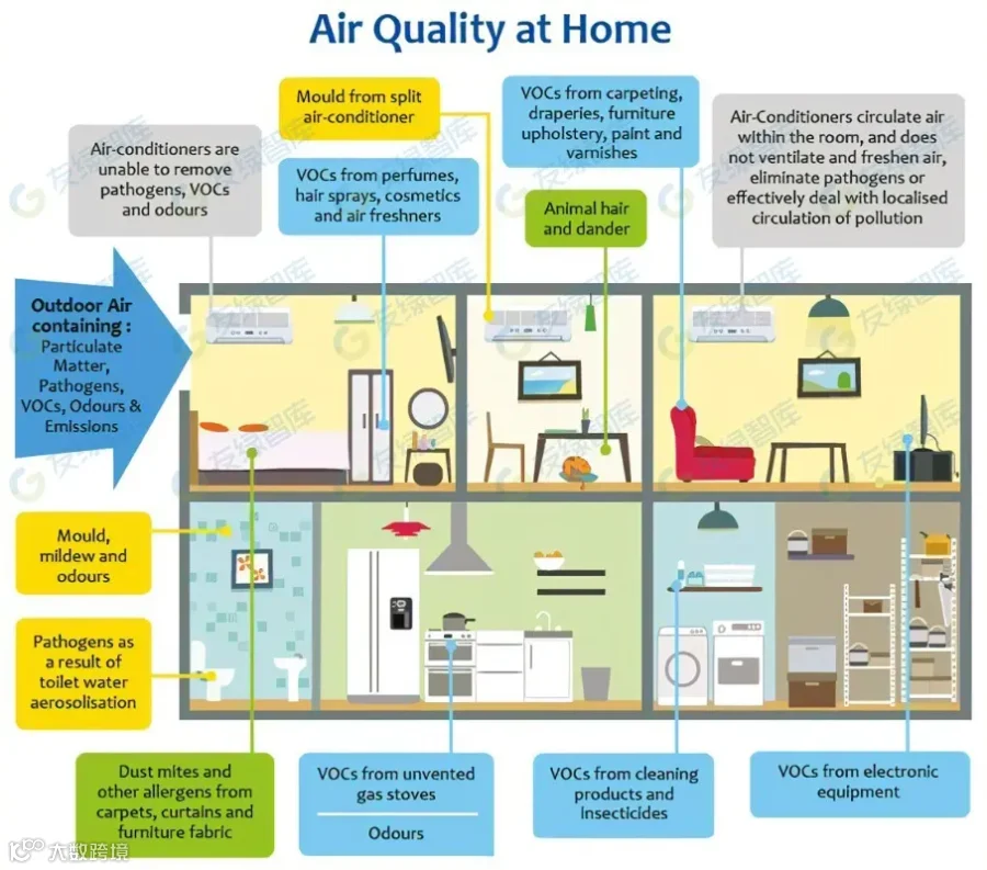 建筑材料影响人类健康的无数方式虽然不明显,但是及其重要。平均而言,人们一生中大约90%的时间都在室内度过。如果选材不当,从建筑材料、室内装饰、油漆、地板和粘合剂中释放的化合物都可能进入空气,然后进入人体,对健康造成一系列负面影响。