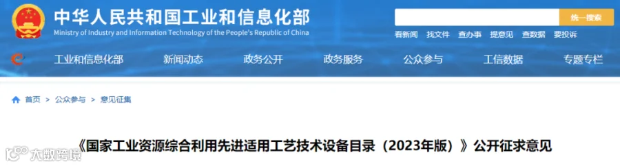 为贯彻《固体废物污染环境防治法》,落实《“十四五”工业绿色发展规划》,加快工业资源综合利用先进适用工艺技术设备推广应用,持续提高资源利用效率,我们研究起草了《国家工业资源综合利用先进适用工艺技术设备目录(2023年版)》(征求意见稿)。现向社会公开征求意见,如有意见或建议,请于2023年6月7日前反馈工业和信息化部节能与综合利用司。