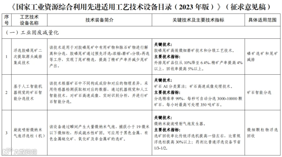 附件:《国家工业资源综合利用先进适用工艺技术设备目录(2023年版)》(征求意见稿)