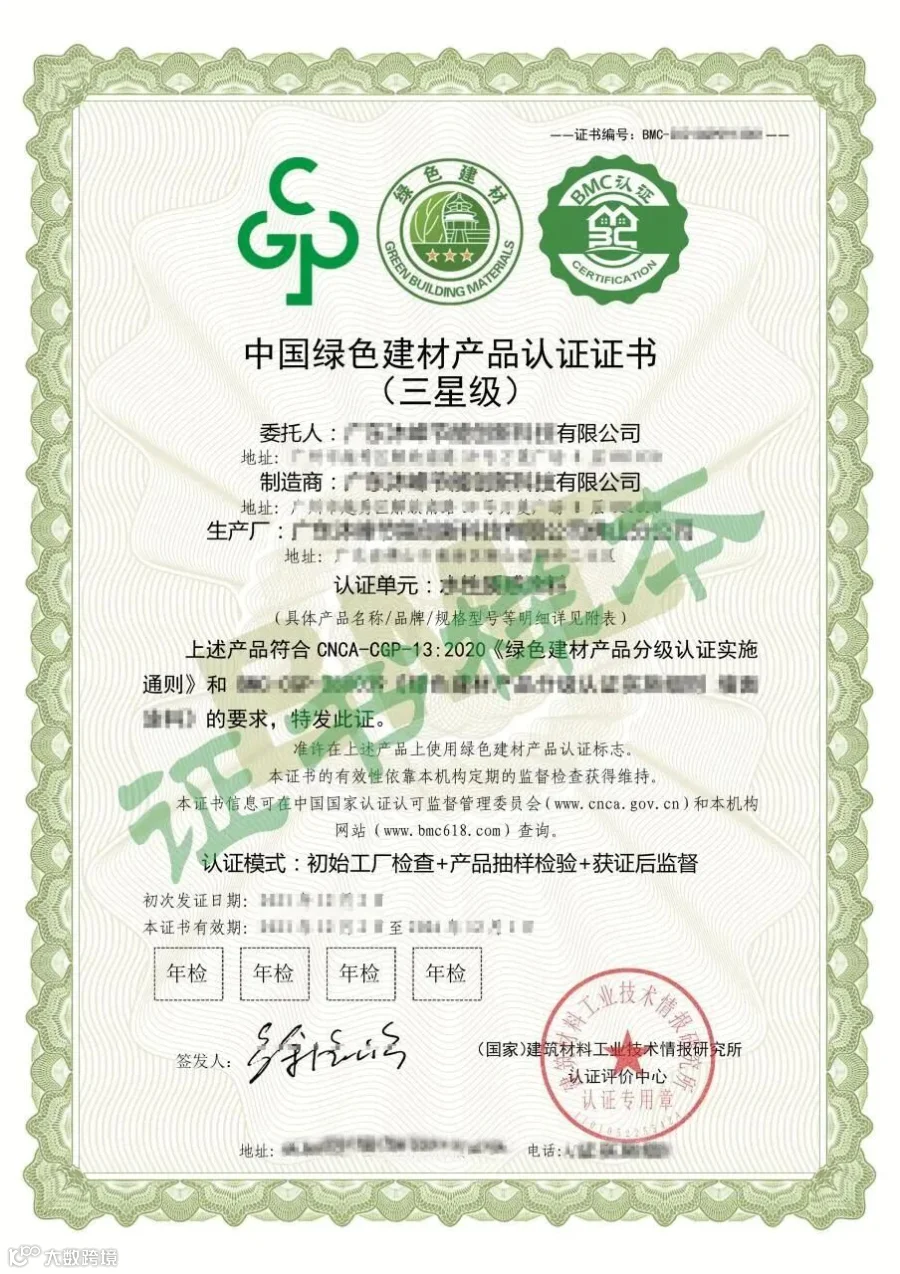 绿色建材产品认证证书什么样