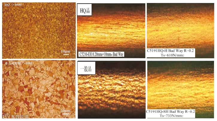 国工新材通过优秀的热处理技术保证带材晶粒度≤6um,所生产的高性能铜合金材料强度更高、延伸率更高、成形性更佳。