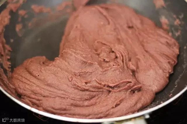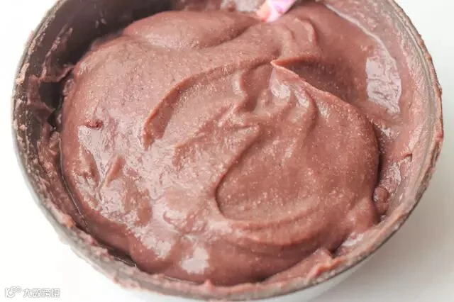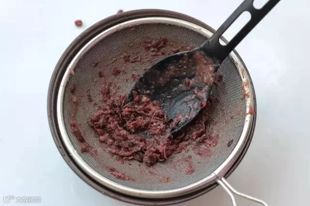 煮熟的红豆碾至无颗粒状。