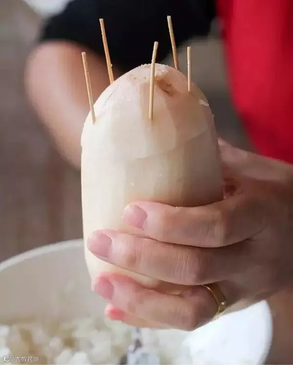 然后用牙签扎紧,放入红糖水中小火熬两小时。