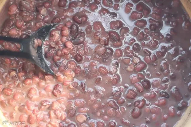 红豆先浸泡一晚,然后小火熬至熟透。
