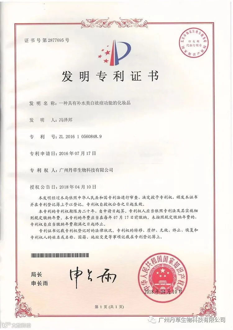 获得国家专利具有补水美白祛痘功能的祛痘产品了解一下!