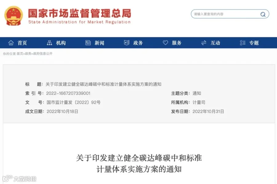 为贯彻落实《中共中央 国务院关于完整准确全面贯彻新发展理念做好碳达峰碳中和工作的意见》和《2030年前碳达峰行动方案》有关部署,近日,市场监管总局、国家发展改革委、工业和信息化部、自然资源部、生态环境部、住房城乡建设部、交通运输部、中国气象局、国家林草局等九部门联合发布《建立健全碳达峰碳中和标准计量体系实施方案》(以下简称《实施方案》)。