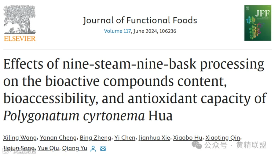 在此背景下,南昌大学食品科学与资源管理国家重点实验室在《Journal of Functional Foods》(2区,IF:3.8)上发表了“Effects of nine-steam-nine-bask processing on the bioactive compounds content, bioaccessibility, and antioxidant capacity of Polygonatum cyrtonema Hua”的研究论文,采用体外消化法考察了不同蒸制次数的PCH中生物活性物质、生物可及性和抗氧化活性的变化。