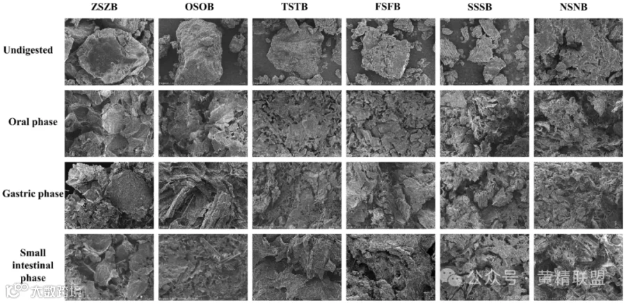 图1.不同蒸制次数的PCH体外消化前后SEM图,500×