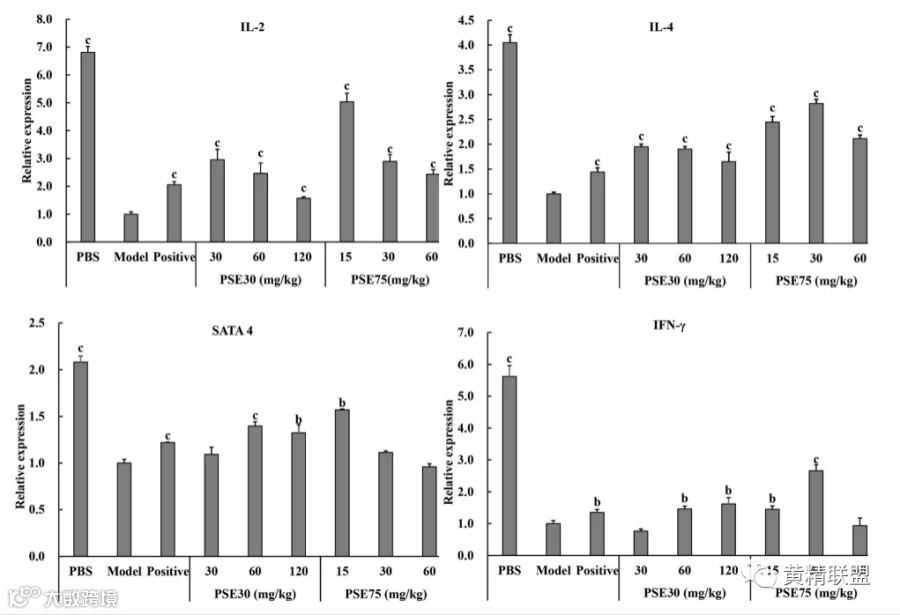 图5 PSE30和PSE75对小鼠mRNA表达的影响。
