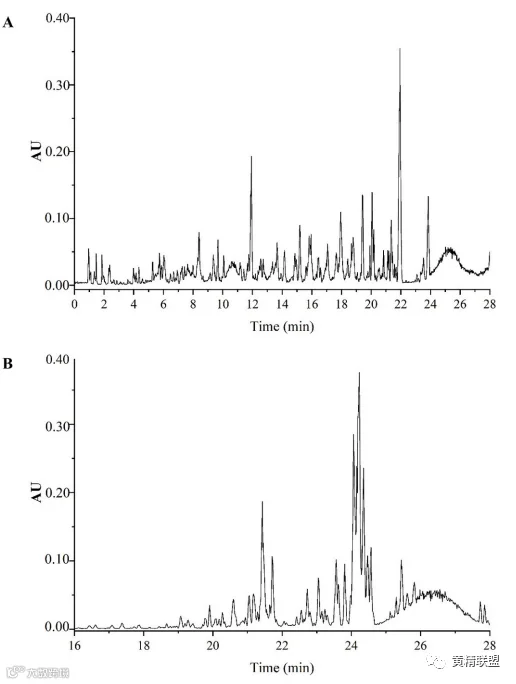 图1 PSE30 (A)及PSE75 (B)指纹图谱